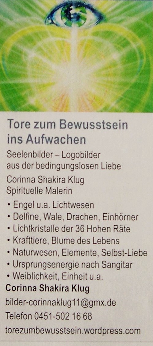 Die Bilder sind Tore zum höheren Bewusstsein, die sich dir öffnen, soweit du es erlaubst. Tore zum Bewusstsein in die Liebe, ins Licht und in die Wahrheit deiner Ganzheit.